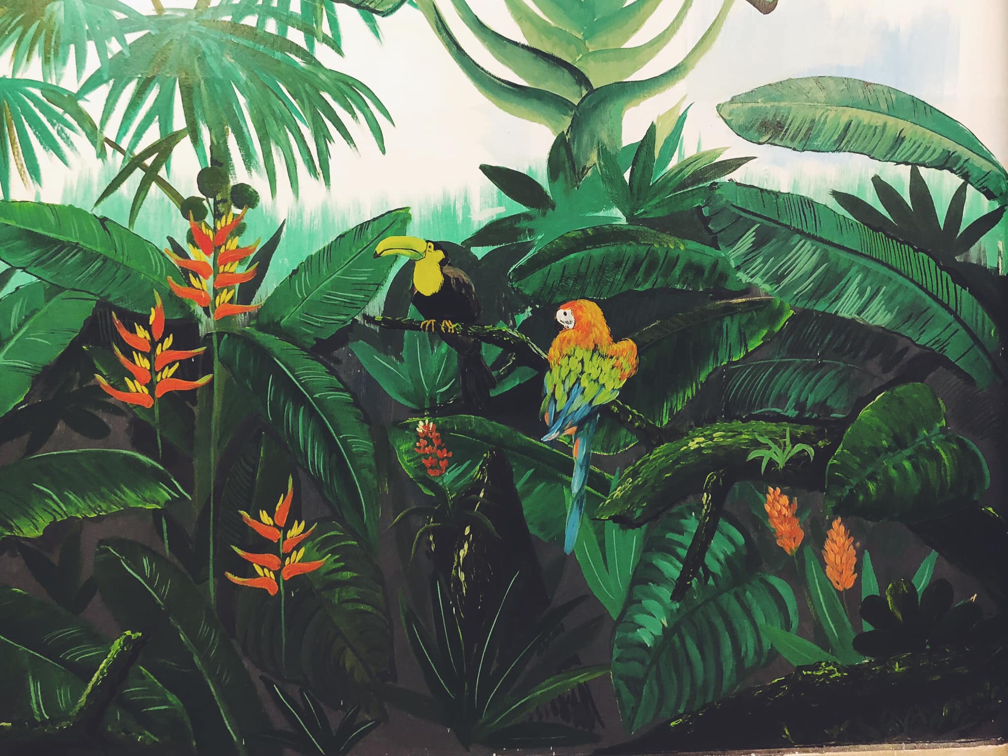 tranh vẽ tường phong cảnh ao sentranh phong cảnh vườn chuối