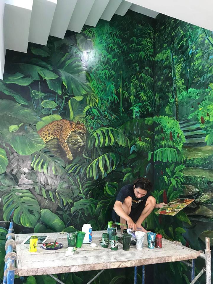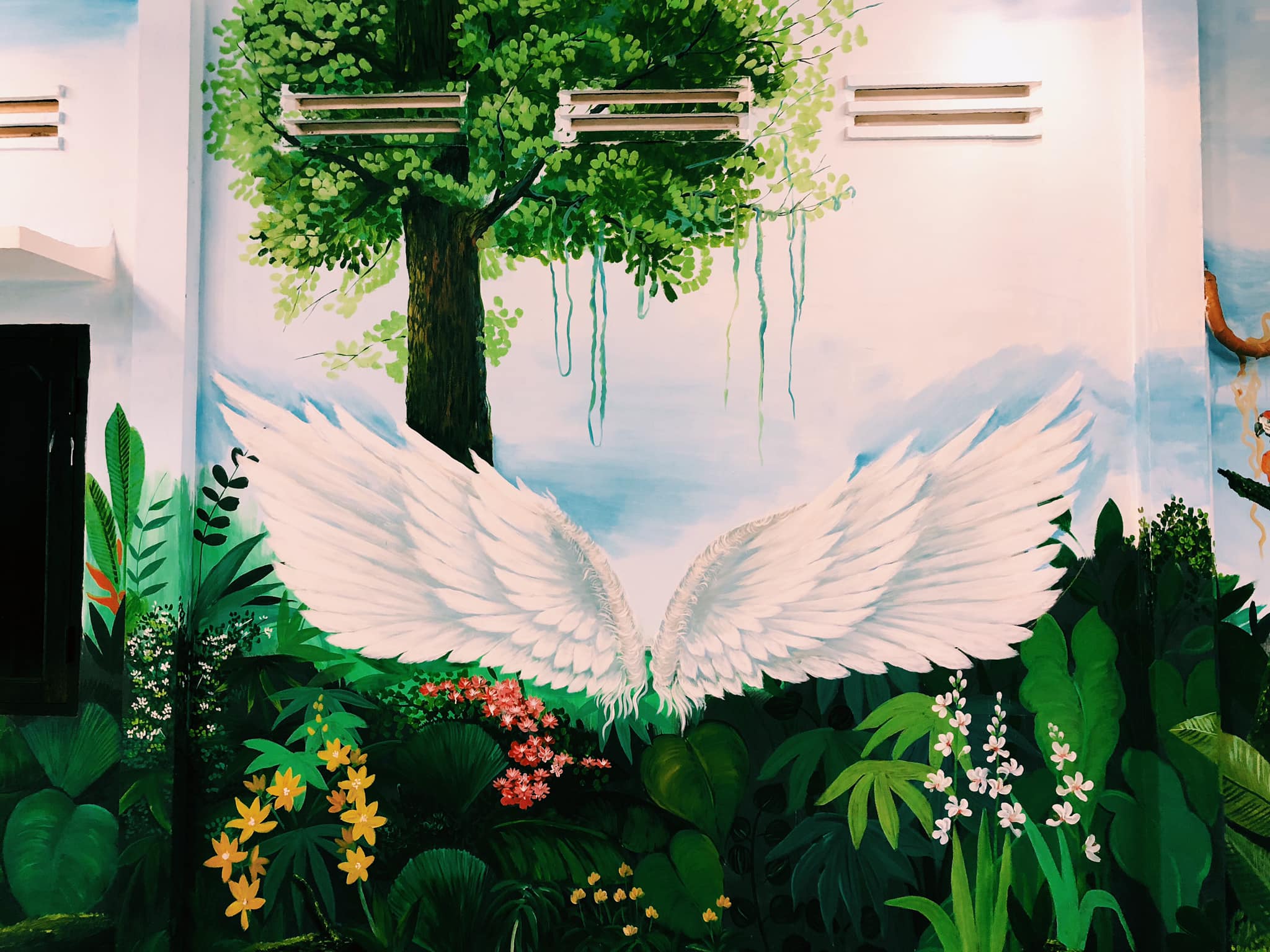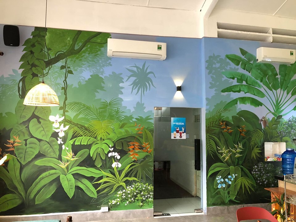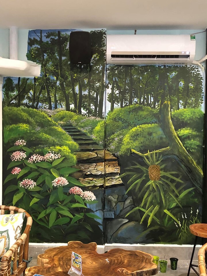 Nhắc đến tranh tường phong cảnh không thể không nhắc đến tranh vẽ nghệ thuật. Bằng bột màu hoặc sơn chuyên dụng, họa sỹ sẽ thiết kế và sáng tạo trên tường không gian tạo nên điểm nhấn chân thực và mới lạ đến bất ngờ.