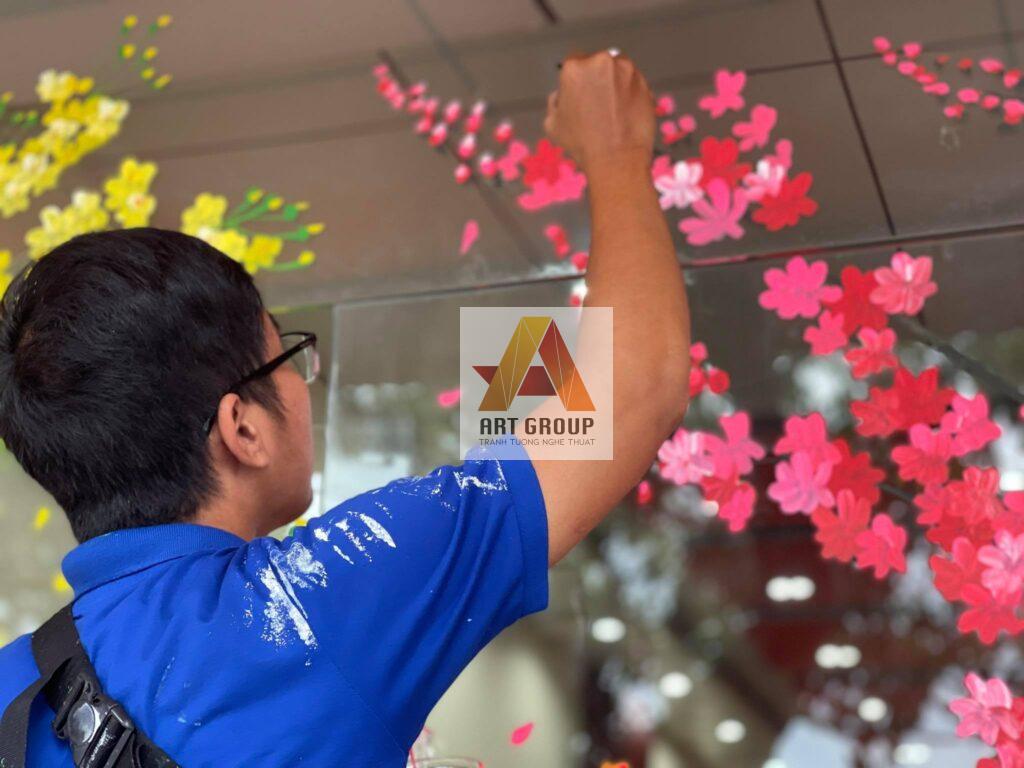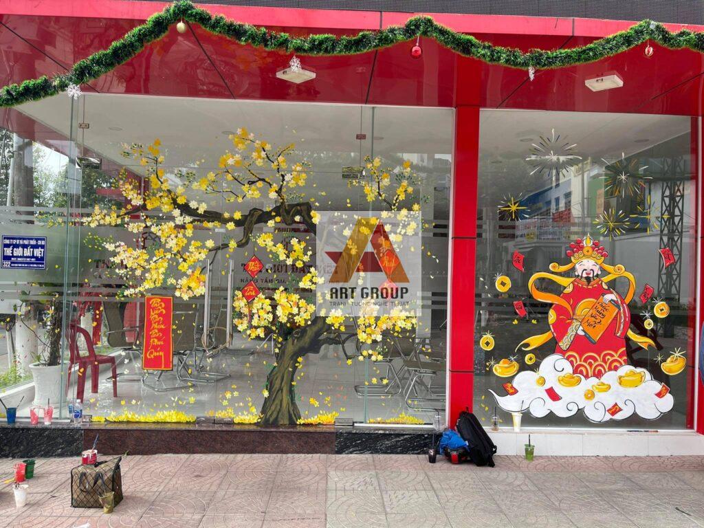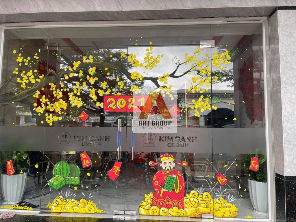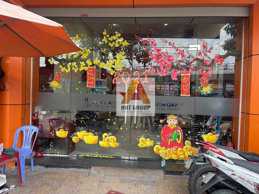 Thi công vẽ kính tết tại BĐS Kim Oanh 2021