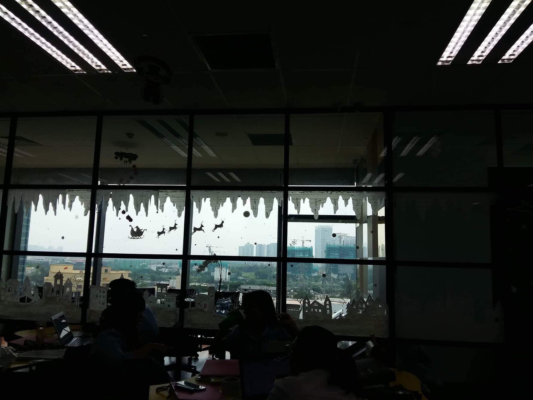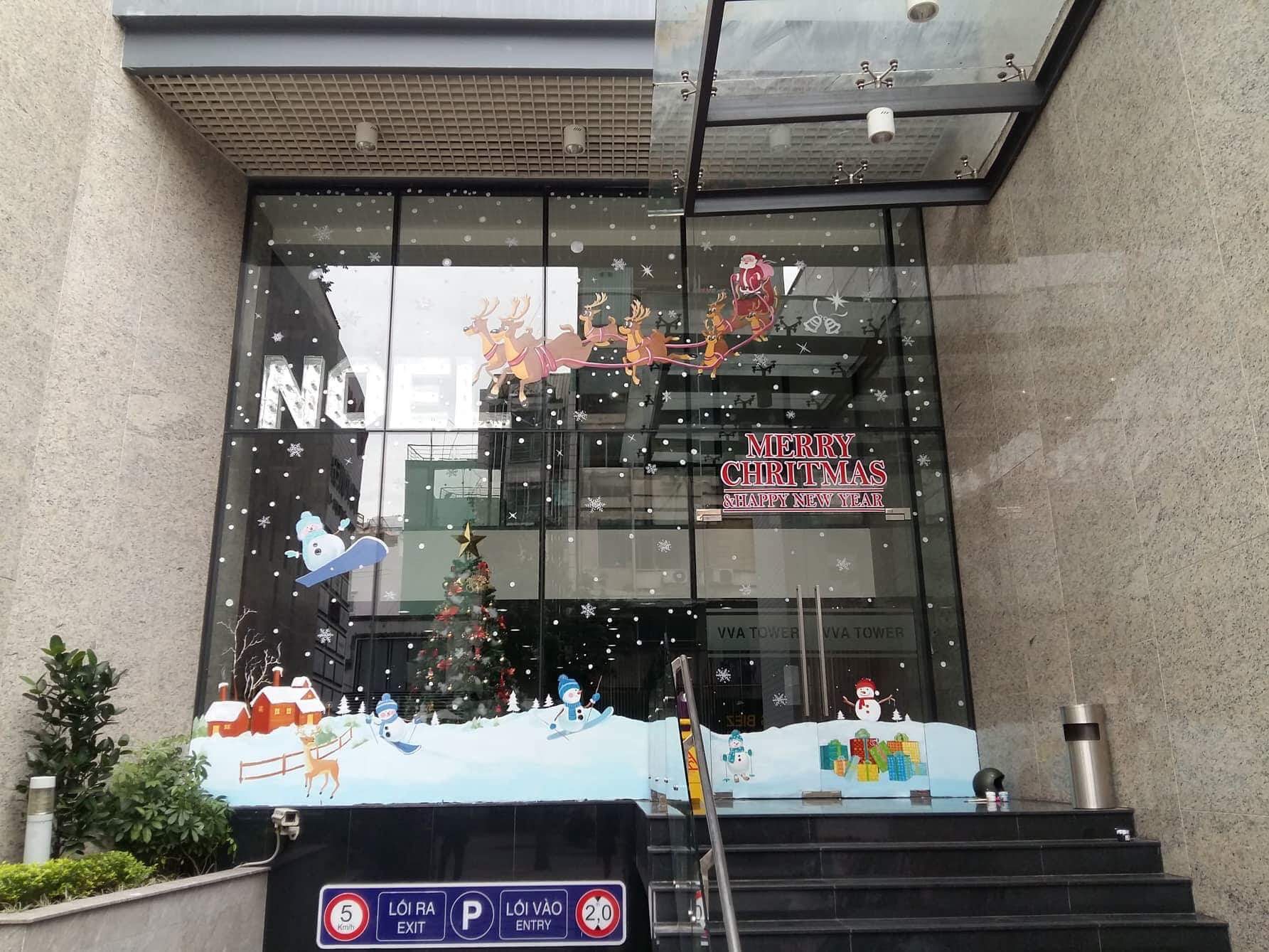 Trang trí noel 2018 trên cửa kính