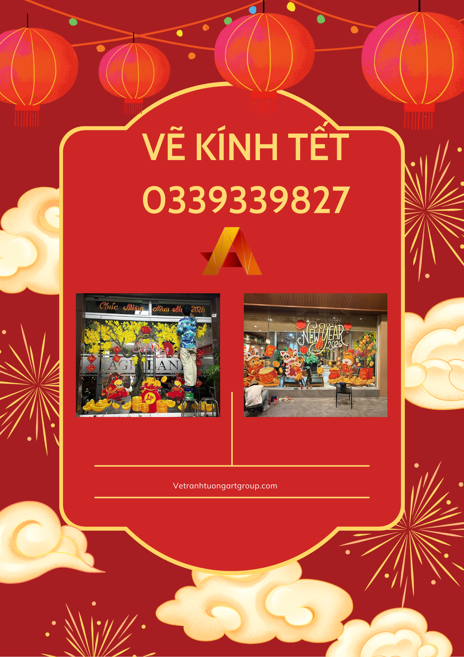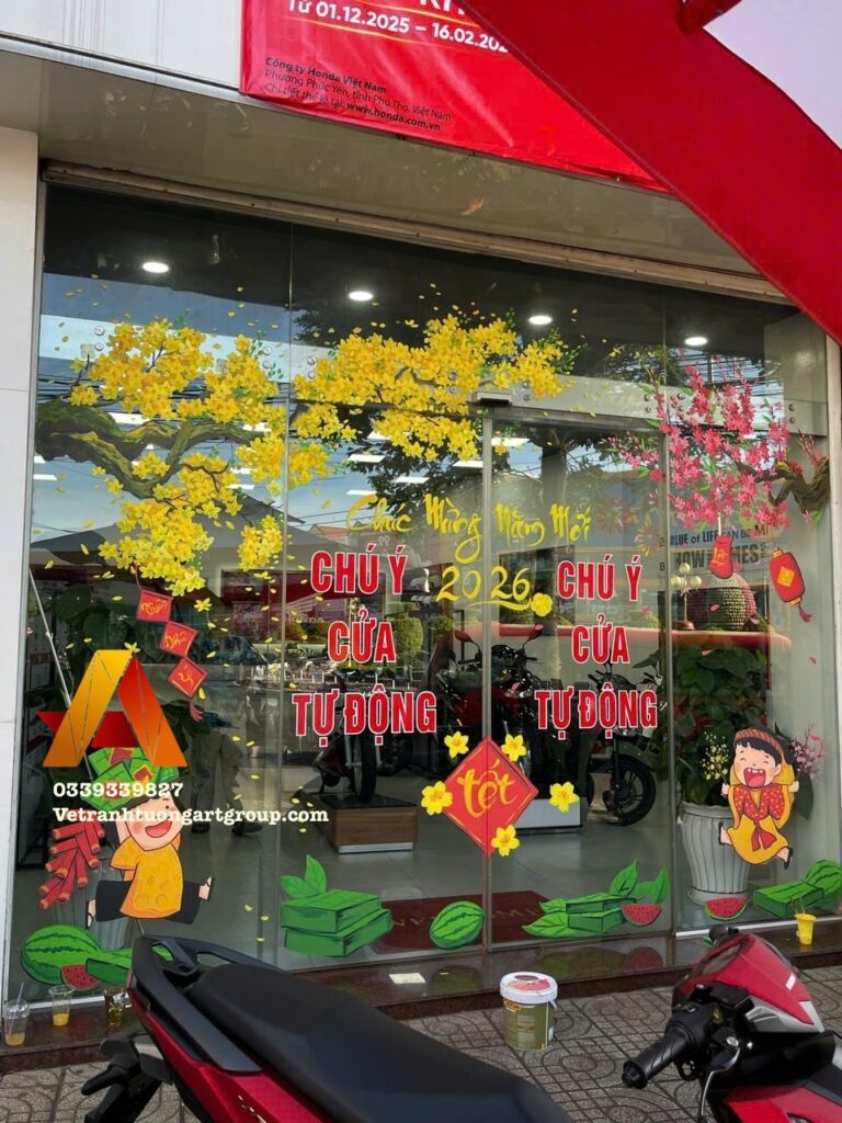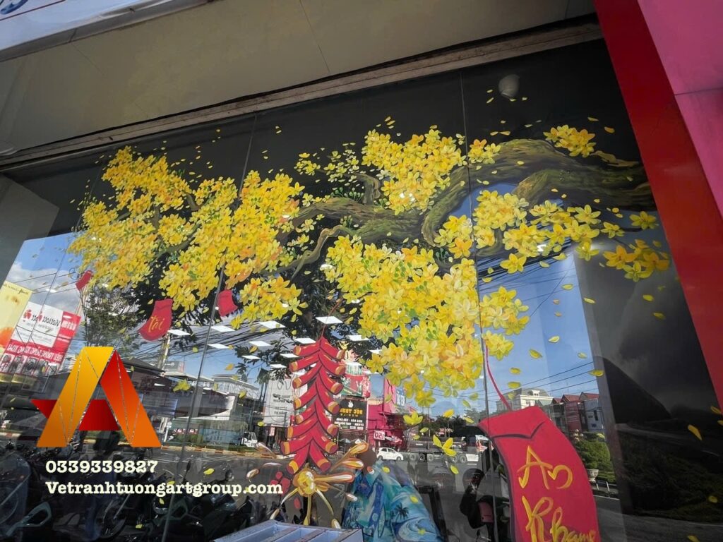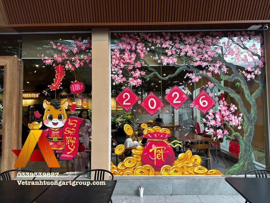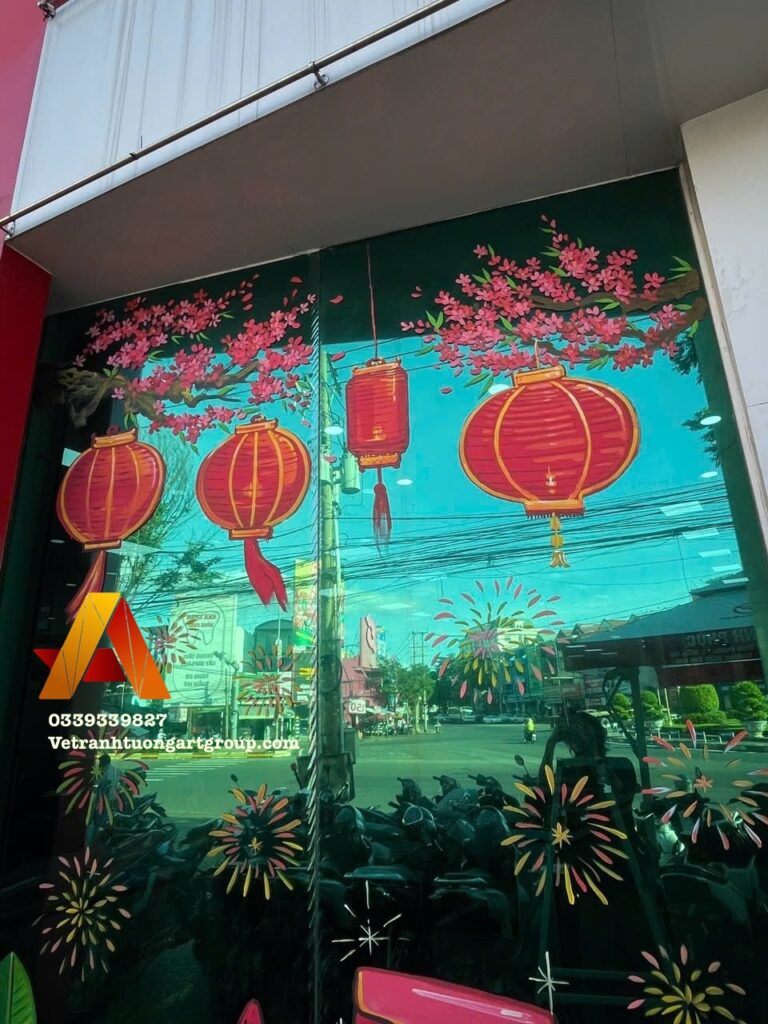 Vẽ Tranh Tường Art Group nhận vẽ kính Tết theo yêu cầu, thiết kế riêng cho từng không gian.