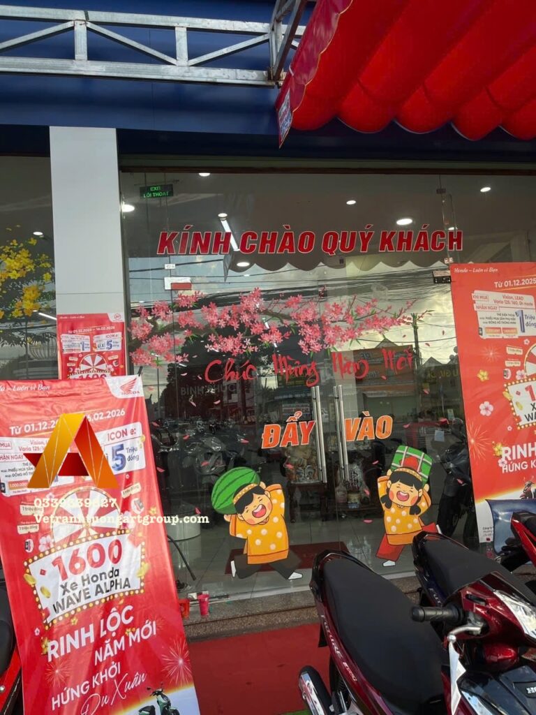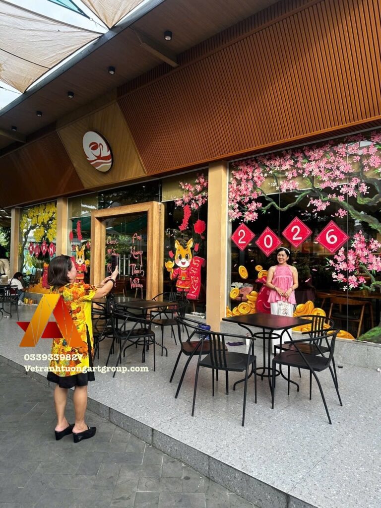 Tết đến là thời điểm lý tưởng để vẽ kính Tết trang trí cửa hàng, quán café, showroom, nhà ở nhằm tạo không khí xuân rộn ràng, thu hút khách hàng và mang ý nghĩa tài lộc – may mắn – phát đạt.