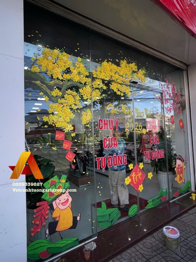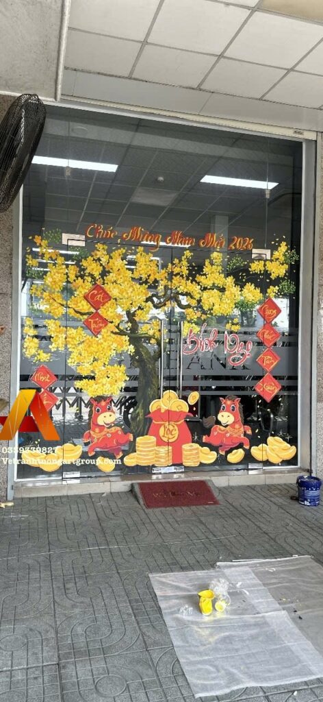 Dịch vụ vẽ kính Tết thu hút – nổi bật – may mắn đầu năm