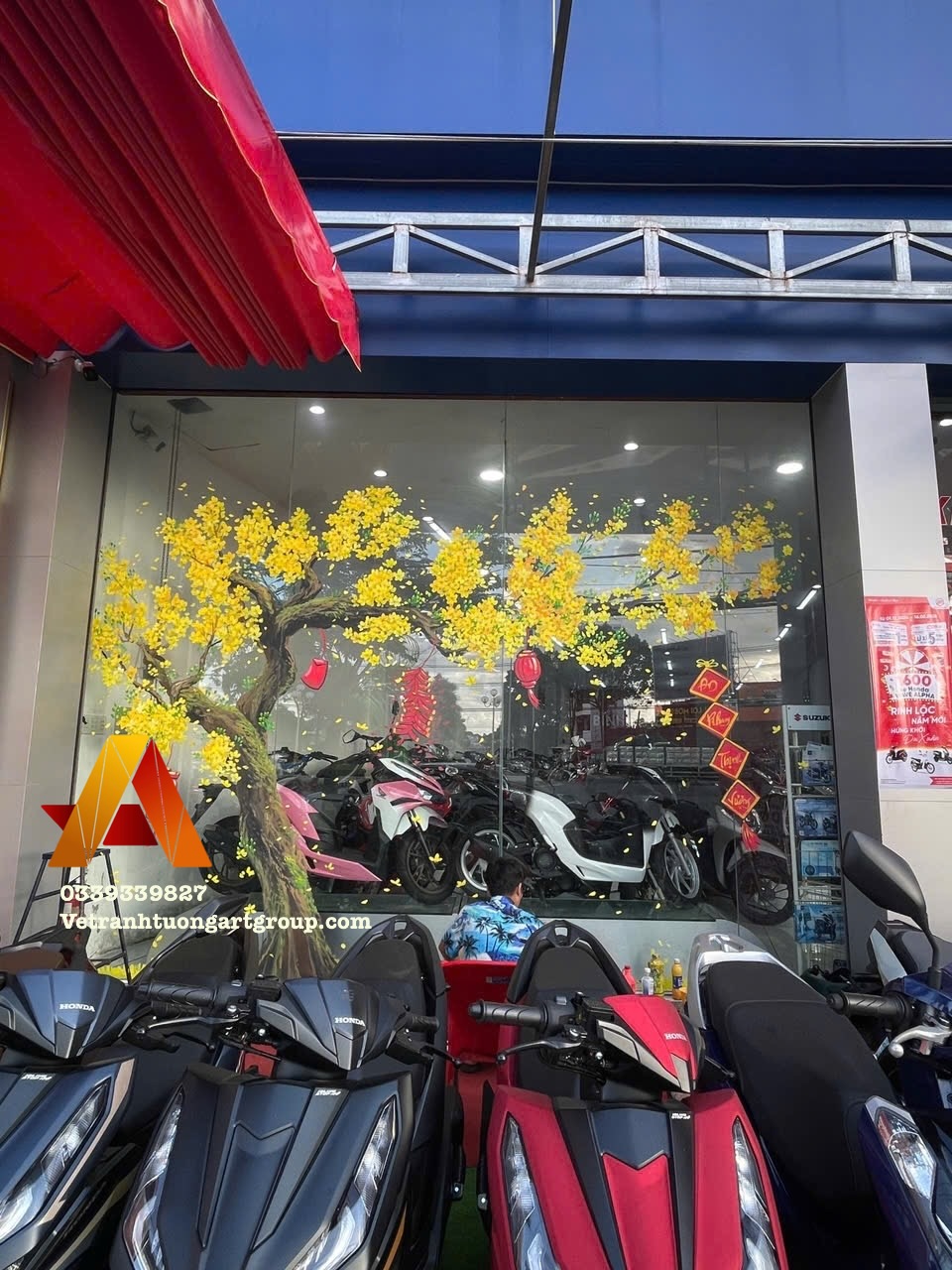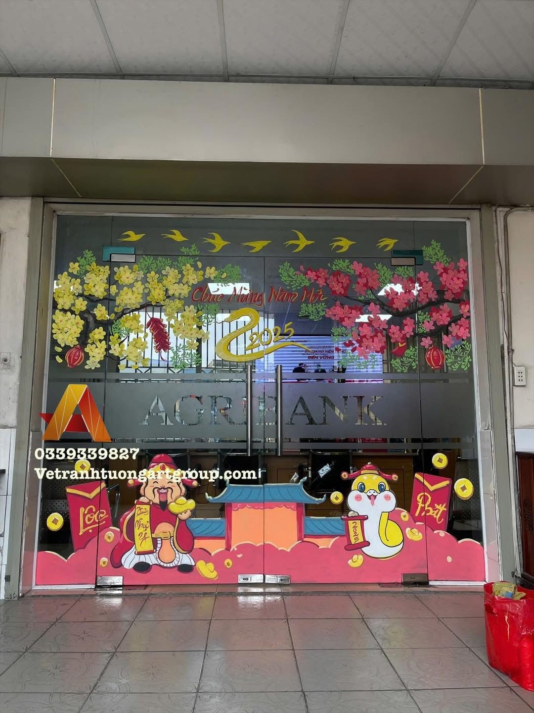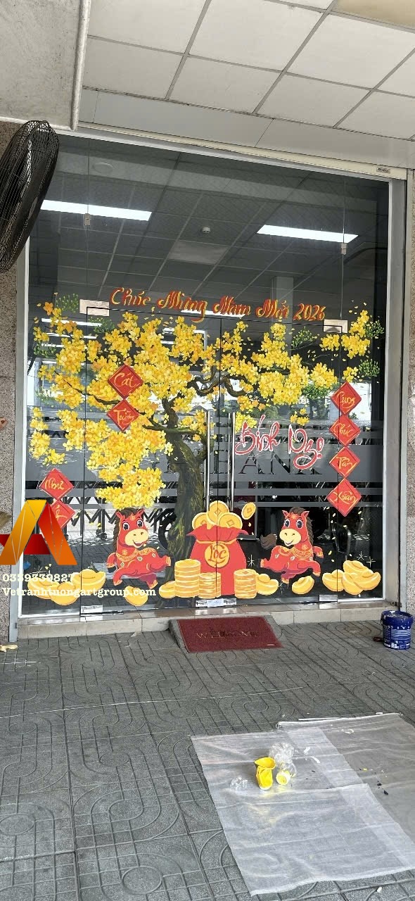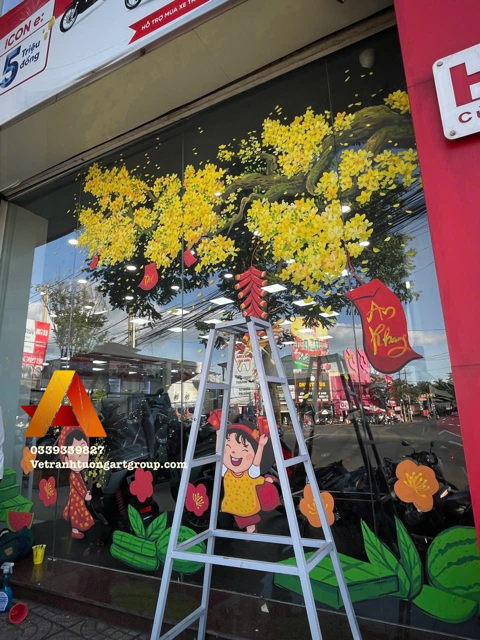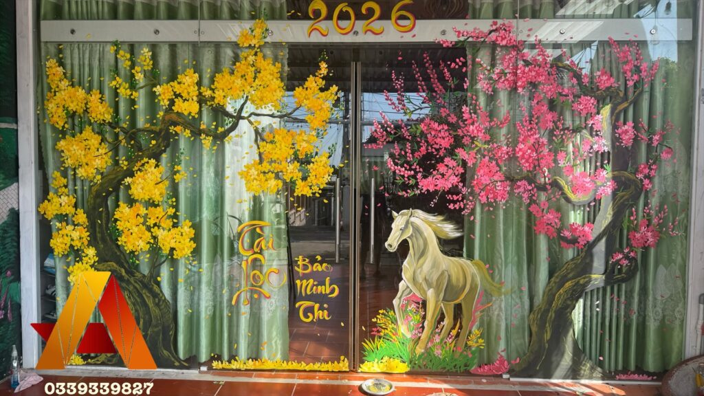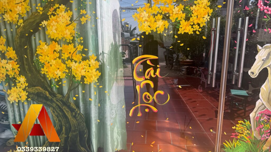 Art Group cung cấp dịch vụ vẽ cửa kính trang trí Tết theo yêu cầu, đảm bảo tính thẩm mỹ, sáng tạo và đúng tinh thần ngày xuân.