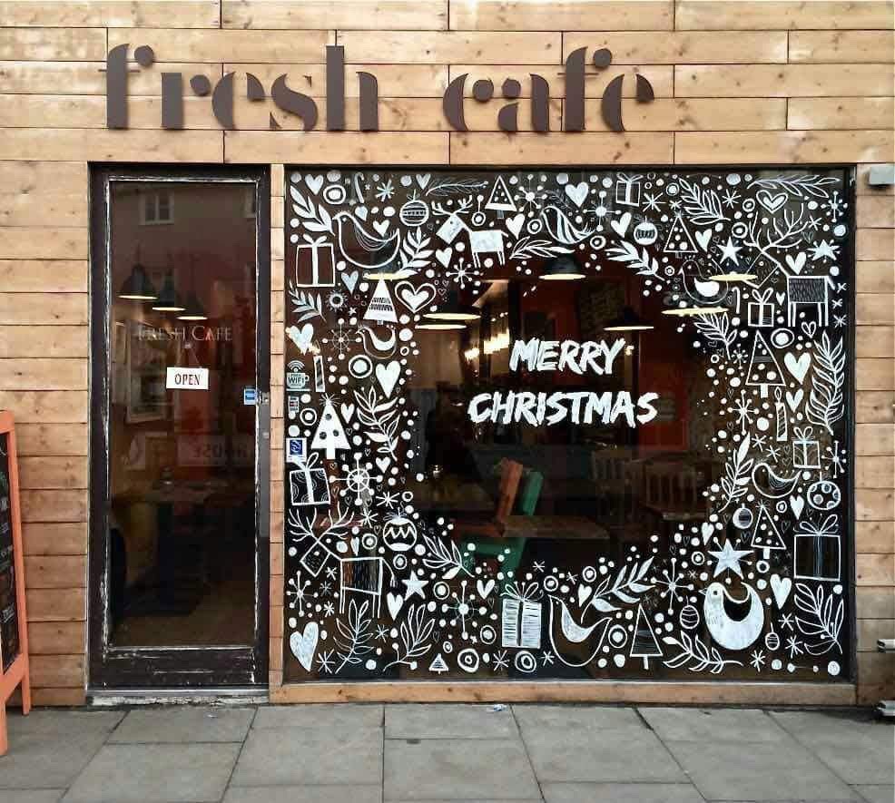 Vẽ trang trí kính noel. Mẫu vẽ kính đẹp cho mùa giáng sinh.