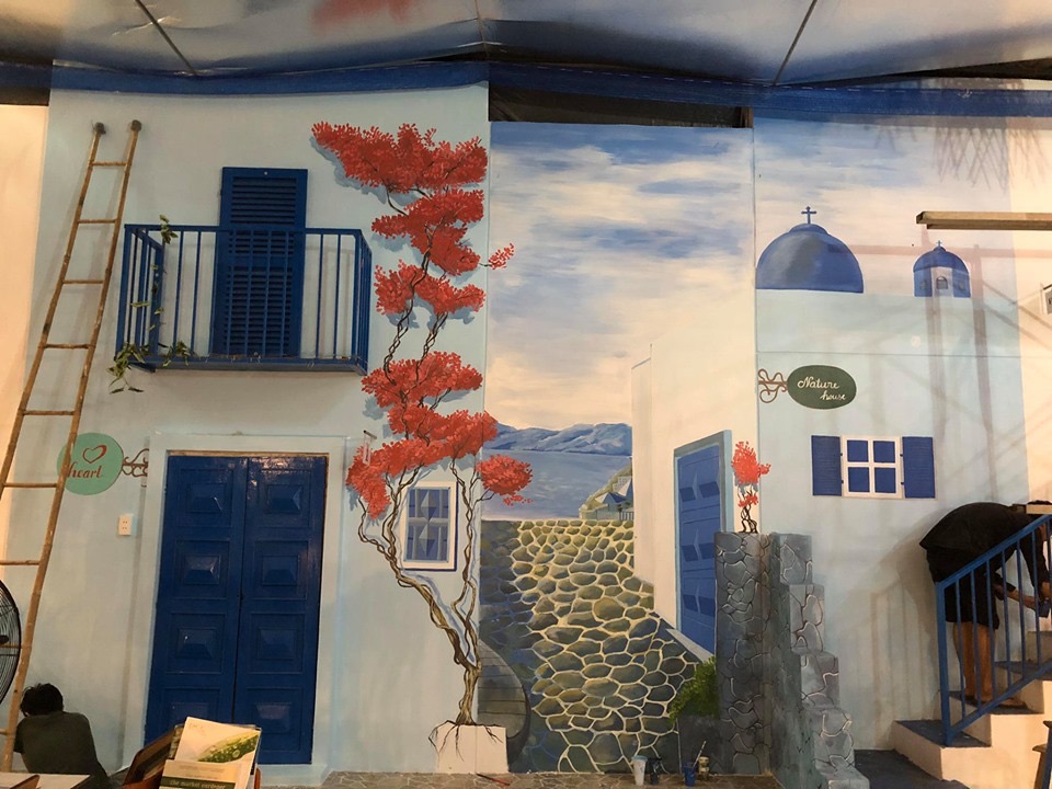 Vẽ tranh tường Santo coffee Tây Ninh. Với phong cách Địa Trung Hải mới lạ , chúng tôi đã tạo ra một không gian mới cho quán coffee , với những đặc trưng vùng trung Đông .