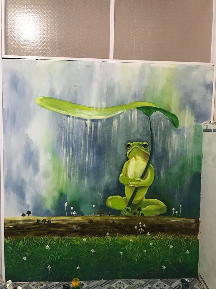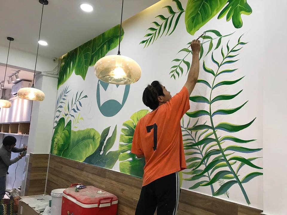Vẽ tranh tường cho quán trà sữa. cũng không cần phải quá cầu kỳ, chủ yếu là tạo phong cách, cá tính để dễ thu hút các bạn trẻ.